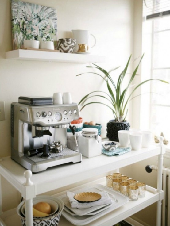 早晨上班前,或是在周日晚上与你的好朋友一起出去喝一杯咖啡。如果你是咖啡爱好者,那么咖啡角应该设置得方便,功能齐全,当然,还要时尚。这就是为什么我们搜集了一些很酷的家庭咖啡角供大家参考!