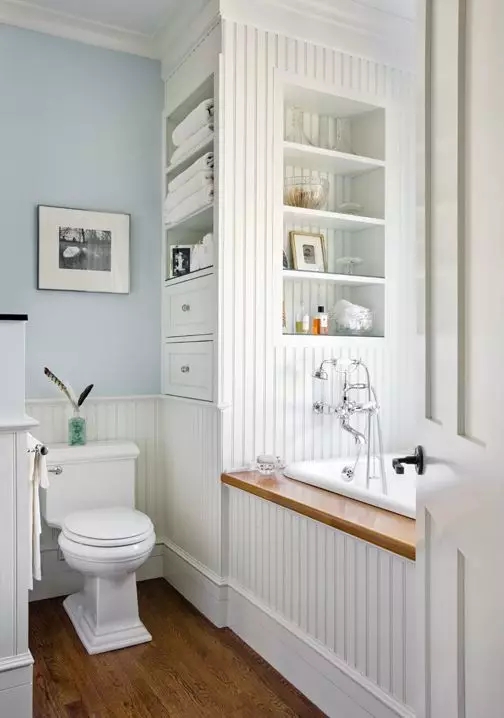 另一个装饰小浴室的方法是使用墙纸,最好是白色或浅色壁纸,选择一个平静放松的设计,并运用在天花板、地板及浴室砖面上,令空间更干净与宽阔。