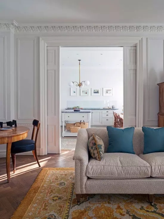 石膏线并非都是白色。除装饰以外,角线同时在室内起色彩过渡和协调的作用,镶好后的石膏线可以刷两到三遍涂料,这样就能将两个相邻面的颜色和谐地搭配起来。
