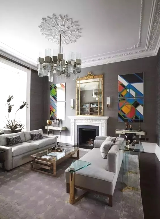 1 装饰:墙角用石膏线走一圈比吊顶成本低多了,还可以用不同的花纹和浮雕造型拼砌出整体效果。