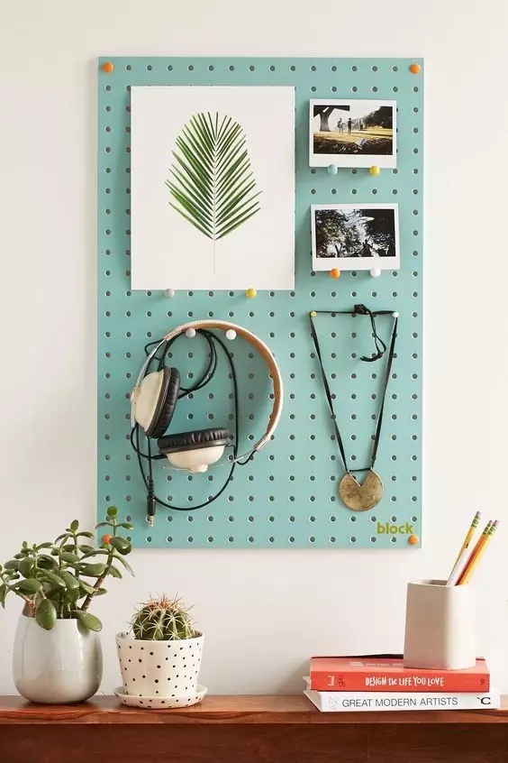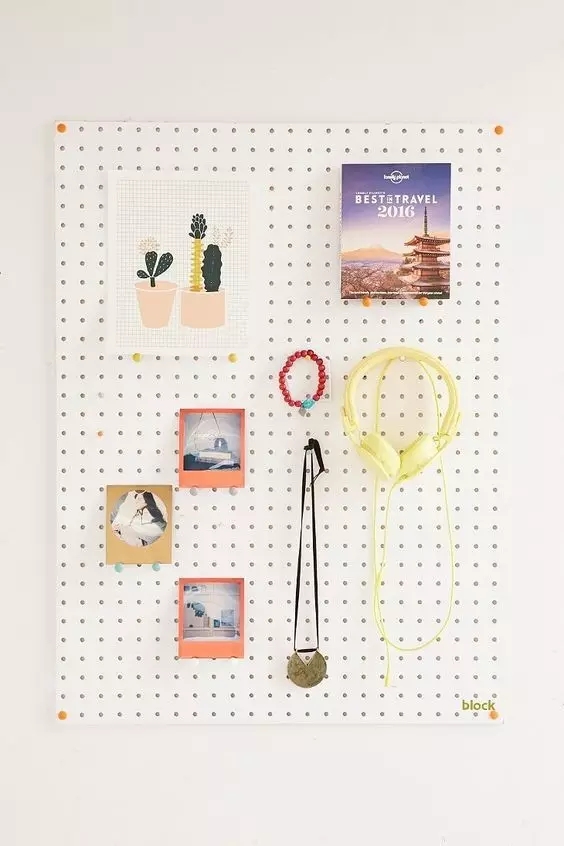 如果你觉得白色单调,没关系!买块彩色的洞洞板或者自己粉刷上喜欢的颜色,这就是一块有颜有实力的板子,随心所欲~