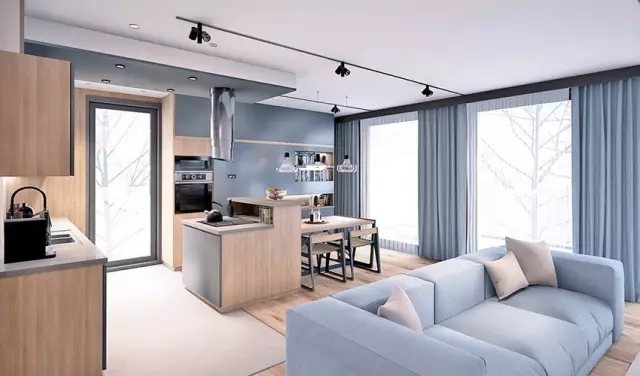 现代风格是比较流行的一种风格,追求时尚与潮流,非常注重空间布局与功能的结合。现代主义也称功能主义是工业社会的产物,实用主义、空间组织、强调传统的突破都是现代风格的理念。