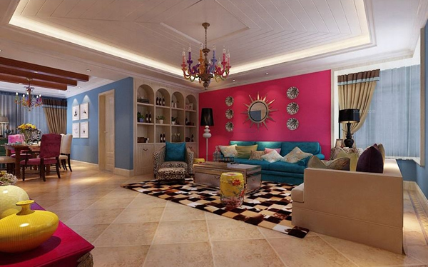 顾名思义,就是把不同地域的设计风格揉合在一起。通常是把两个地域的设计风格相结合,在房间基调上展现一种地域风格,再以色彩和装饰物来展现令一种地域风格。