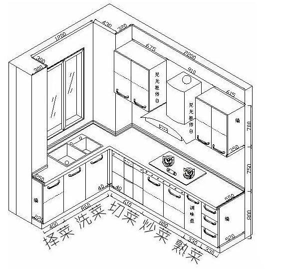 设计的时候,一般根据洗菜-水槽、切菜-台面、炒菜-灶具这样的顺序排列。这是厨房的基本功能要求。除I字型外,基本都可以满足要求。I字型,有些因为空间问题,操作受的限制还是比较多的。