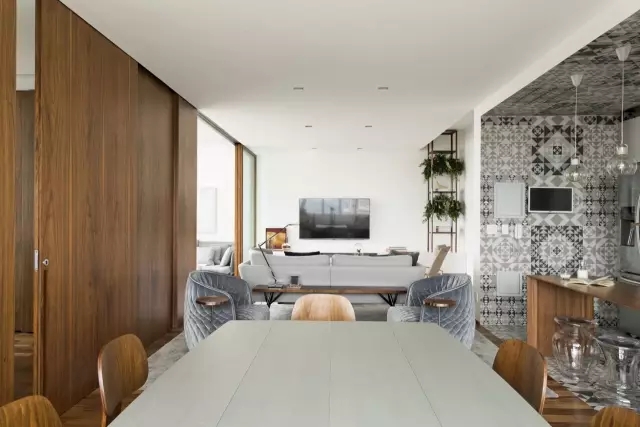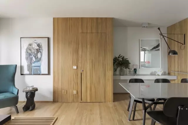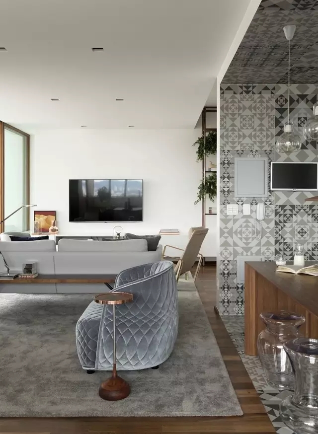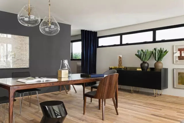 柚木搭上前卫灰,立即营造出一种摩登感。