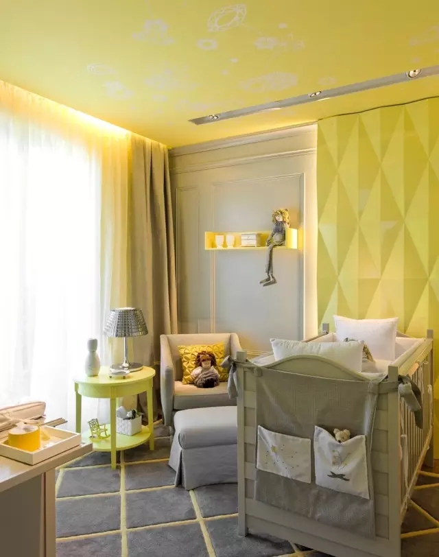 柠檬黄配浅灰嵌板