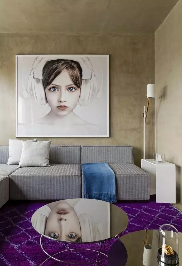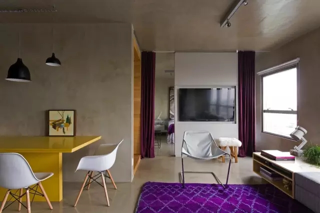 水泥墙壁和天花板,抢眼的深紫穿梭在这现代的生活空间中浪漫演绎。