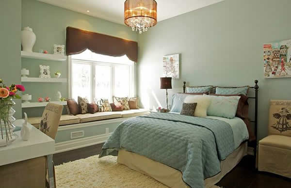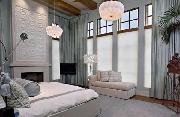 卧室里一般不适宜用太深的颜色装饰,但是渐变深色的上部白色略微透光,不会让人感到心情压抑。