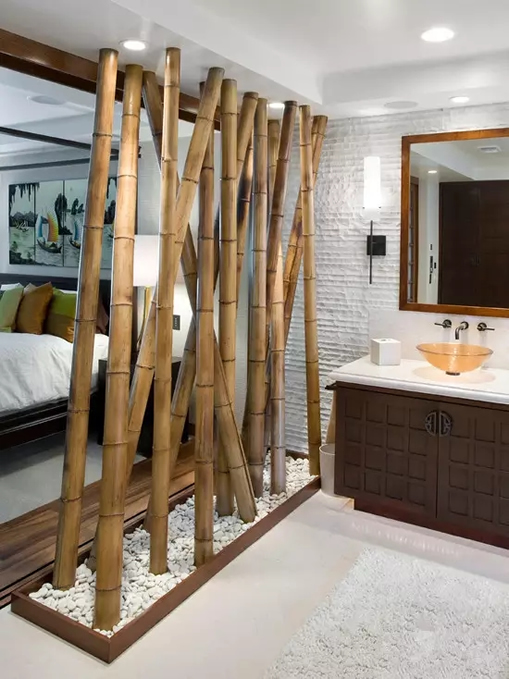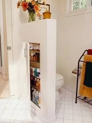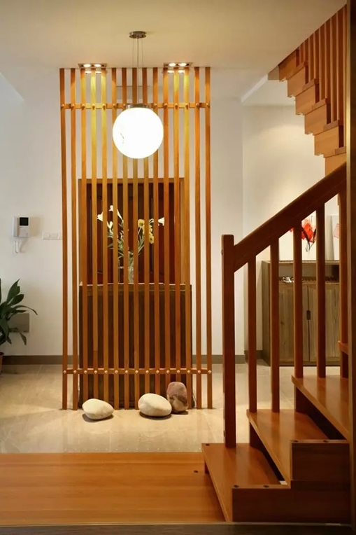 卫生间里面的小隔断,可以变成一个储物空间;同样作为干湿分离,或是功能划分,在卫生间中安装屏风隔断,也是一种比较实用的方式;复式楼梯间,照片墙都可以作为隔断设计。