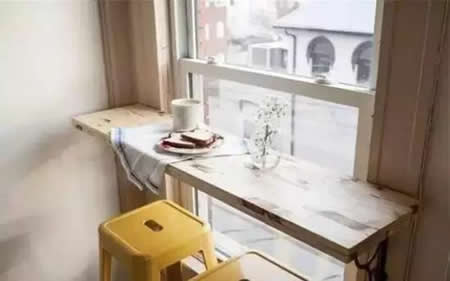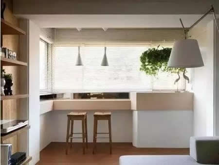 窗台附近可做一组小吧台,把闲置的空间利用上。尽量不要影响到采光,做这板简洁的层板。