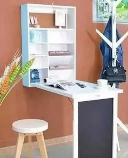 在家里找个空墙壁就可以放下了,不用的时候关起来,不会占用太多空间。小卧室或者书房又能当书桌实用。