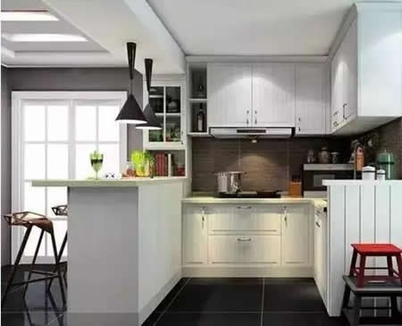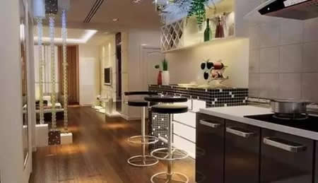 厨房和餐厅之间作吧台当隔断,顾名思义就要做敞开式的厨房,会扩大整个空间感。但前提是能接受油烟带来的一些困扰。