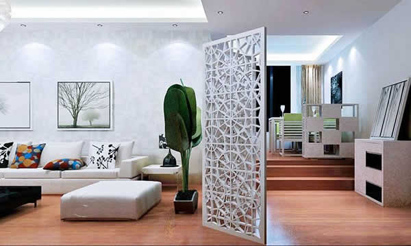 据了解,屏风面一般有透明、半透明、封闭式及镂空式等。小编建议,用以间隔的,一般以封闭式为好,高度宜略高于人的水平视线之上。用以遮掩杂物的,可 采用镂空式,显得活泼而有生气。如果是用来遮挡路人的视线,最好将屏风做成九十度直角形式。若仅仅用作装饰,则透明或半透明的效果更佳。