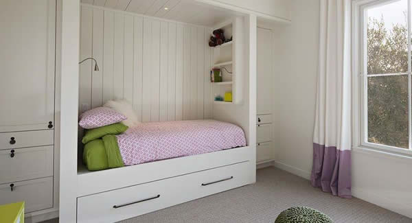 2、榻榻米床的储物收纳功能。 榻榻米床之下的空间可以作为储物空间。设计时要注意面板的承重能力。结实耐用的实木面板作为面是很好的。如果家里有安装地暖,那么榻榻米床之下的空间就不宜作为储物空间了,对储物空间的物品加热,也许会损坏物品。