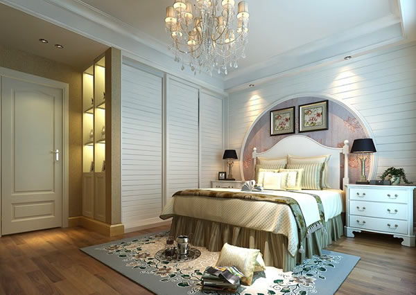 美式风格装修特点显得更加华丽、高贵,因此在选择卧室门的时候,颜色一定要选择那种看上去显得很高贵之色,推荐颜色:棕白色、米黄色等颜色较适合。
