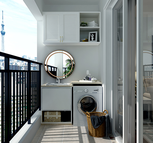 有了阳台柜,再也不用另外腾出空间做洗衣房啦!