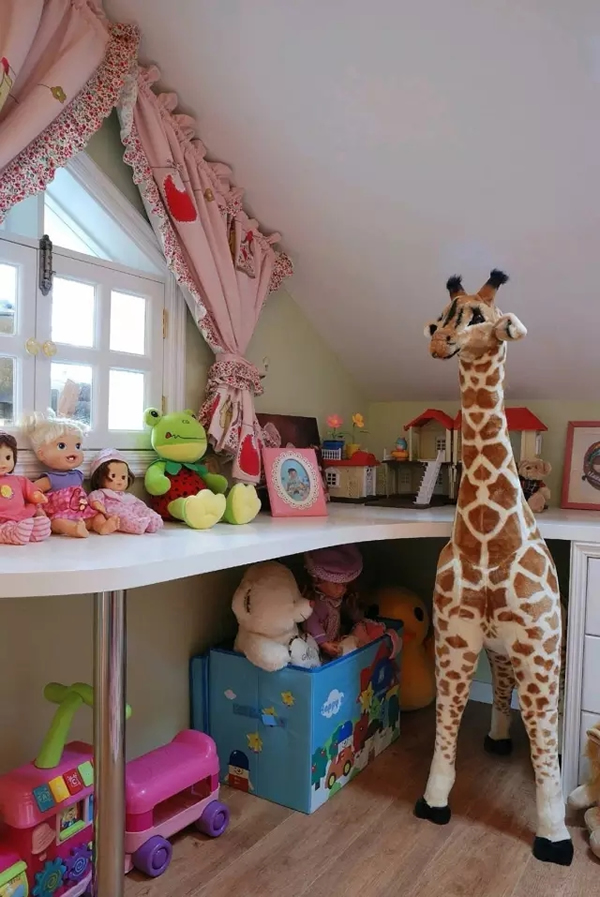 ▲儿童房的这个区域是女儿长大以后的学习区域,现在正处于玩乐好动的年纪,便将此处暂时充当了玩具的收纳场所。