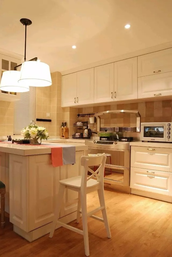 ▲餐客厅一体化,房主一家人都是地道的杭州人,口味都比较清淡,做饭没有那么多油烟所以大胆地采用了开放式厨房的设计,即使油烟比较重的时候集成灶也能完美地解决油烟问题。