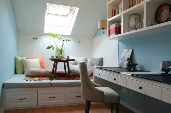 ▲书房次卧与休闲功能的完美结合,榻榻米上房天窗的开设为这个面积不大的空间带来充足的光源,明亮开阔又起到扩大视觉空间的作用。