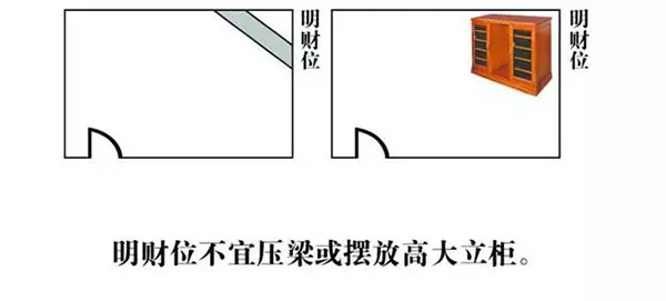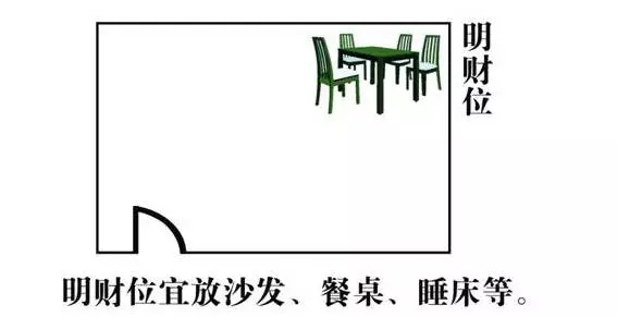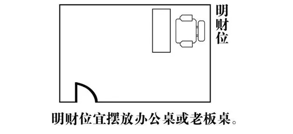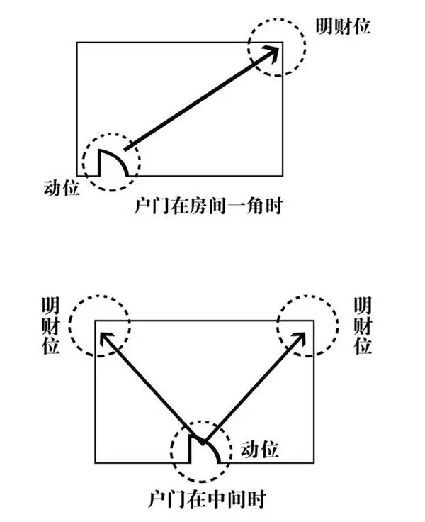 一个户门是我们经常走进走出最为流动性强的区域,因此过去也有把"户门"称之为"气口"的说法,其寓意象征气流一进一出的地方,户门即是房间中最大的"动位"。所以一个房间的财位可以根据户门在房间中的位置不一样,一般可分为两种:当户门在房间一角时,"明财位"在与户门对角的位置;当户门在房间某墙中间开门时,"明财位"在与户门成斜对角方向存在对称的两个"明财位"。