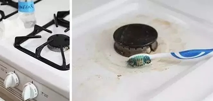 打火灶:第一步,热肥皂水浸泡,抹布擦掉;第二步,醋泡,擦掉;第三步,挤点洗洁精,用旧牙刷刷刷刷▼