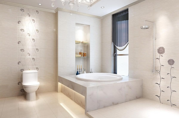 浴室的墙壁和天花板所占面积最大,所以应选择既防水又抗腐蚀和防霉的材料来确保室内卫生,瓷砖、强化板和具防水功能是塑料壁纸都能达到这些要求。天然石料如大理石则具有特殊的质感,但可异在狭小的大卫生间内发挥不了效果。