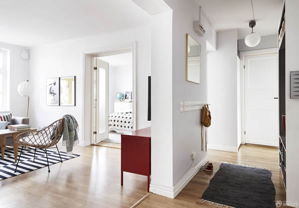 由于大多数的房子都没有自然光源,所以若是你运用了壮实又不透光的材质,就需要在采光方面多动动脑筋了;因为玄关处的采光宜亮不宜暗,可在天花处设置一些射灯,这样既能保证采光,又能提升室内效果。