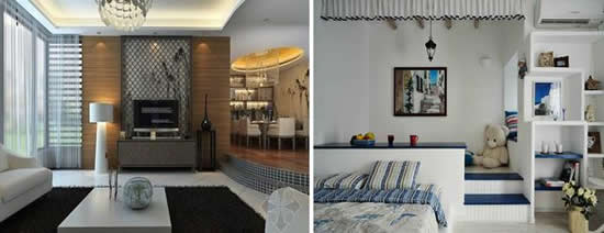 指:“交错的地面”一套住宅内的各种功能用房在不同的平面上,用30-60cm的高度差进行空间划分,层次分明,立体性强,但并未分成两层,适合100平米以上大面积住宅。结构上指的是同一层的楼板不在同一平面上,有一定的高差,以客厅为例:又分为上错或下错,结构错层与设计错层,如下图: