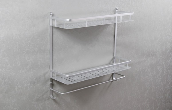 前比较流行的一种就是经济实惠品质高的太空铝挂件,太空铝是一种强度和防腐蚀性能都很高的铝制品,表面一般是氧化或拉丝处理,不能电镀,所以只能买到亚光的产品,亚光产品最大的问题就是难于清洁。铝合金产品一个比较突出的问题就是重量很轻,抗弯性能也不是很好,如果用作挂件,使用一段时间后容易产生形变,种材质的浴室挂件比较适合放置一些质量较轻的物品。