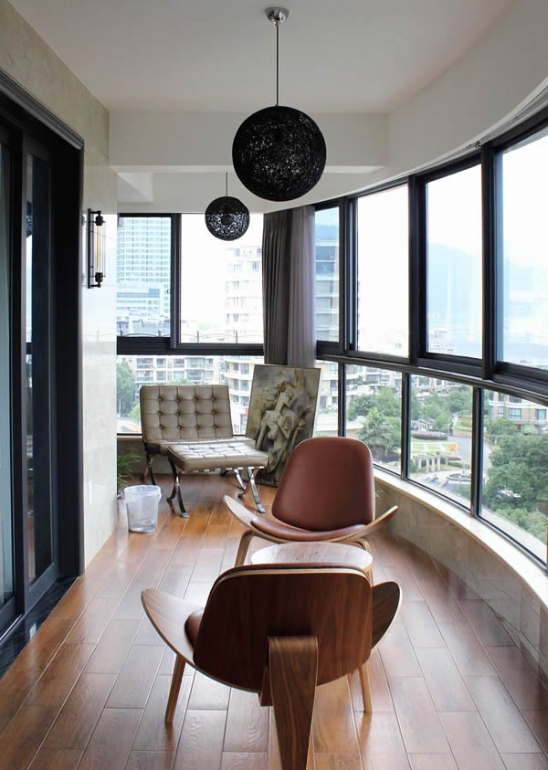 若你家居阳台采用简欧风格进行装修,而且天花板没有采用装饰,那么在阳台灯的选择时,可以选择一些简欧式的吊顶,如上图,型同于古典的“马灯”造型的吊顶选择,为整个空旷的天花进行点缀,得到意想不到的装饰效果。