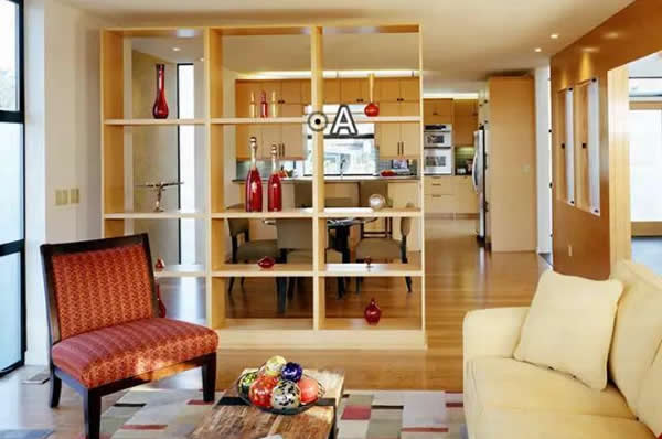 答曰:最好选择一些通透性强、占地面积较小、同时又兼具使用功能的隔断物件