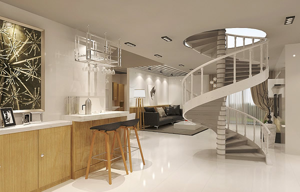 复式楼装修灯具的选择很重要,水晶灯、台灯等都很适合;吊灯适用面较广,无论是放在卧室、客厅、餐厅、阳台等都合适。