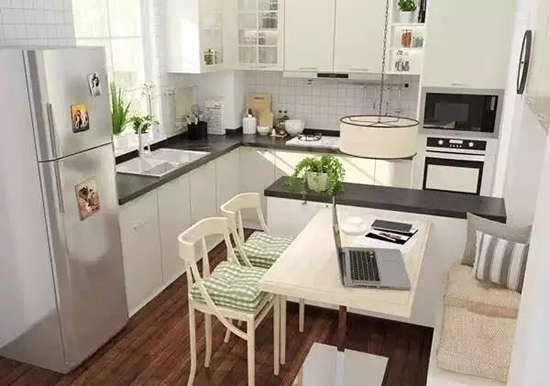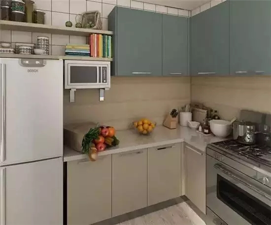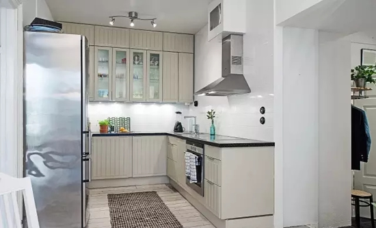 如果你不大的厨房里还要塞进一个超大冰箱,绝对要选择L型厨柜布局