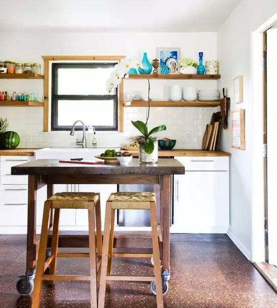 超小空间的厨房攻略二:白色提升空间亮度 + 移动小桌比柜子更灵活 + 挂篮不能少