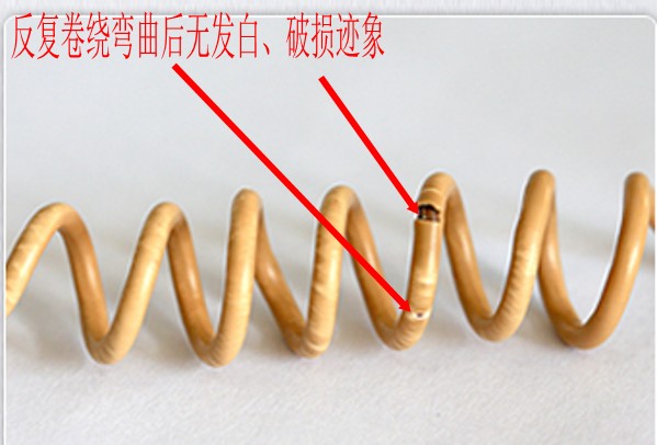 好的电线用手反复弯曲,手感柔软、反复弯曲后绝缘层无裂纹,特别是冬天最好试验,气温低是,不过关的绝缘层经过反复弯曲,很容易出现裂纹。其实这个大家在冬天使用电器时应该有体会,差点的电器插头线缆,冬天显得很生硬。