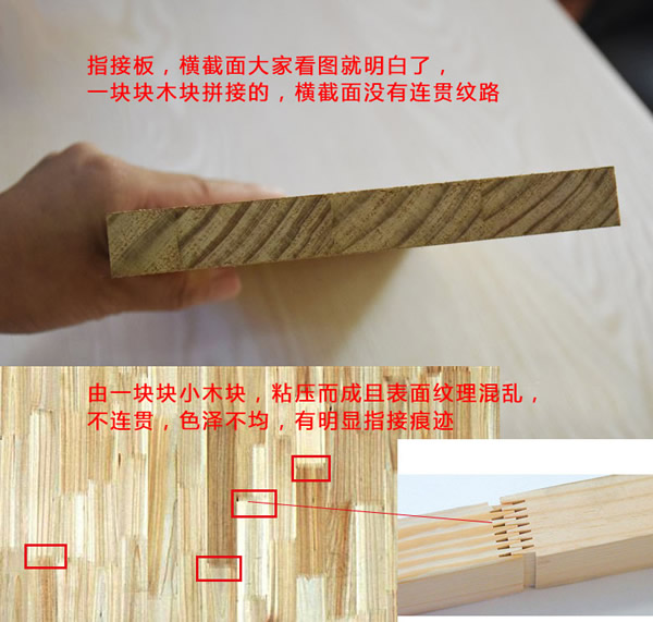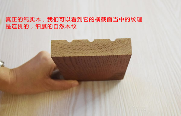 有人疑问说:现在贴皮的也可以贴得很仿真,而且也常有用指接板忽悠客户的,确实是这样,所以这时候,我们要看木板的横截面