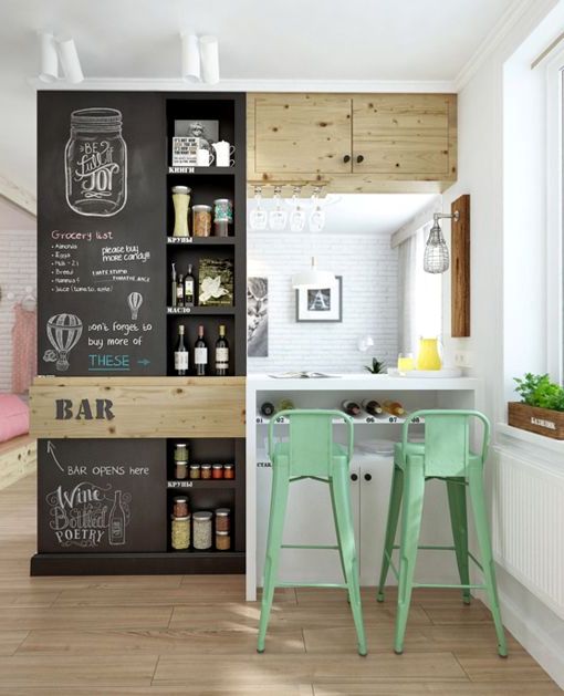 其实再没有比厨房更适合使用黑板的地方了,因为黑板墙纸的功能性极强!你既可以在上面留些信息或购买的物品清单;也可以用黑板突出整体区域,例如,烹饪区或早餐区,或烘焙区。厨房防水板,橱柜门,收纳和香料的容器,即使是桌子面 - 这些都只是灵感岩浆的一部分!
