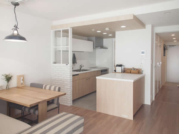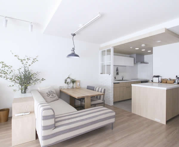 厨房设计得更易于使用,去除了隔间墙让整个空间变通透,也让室内变开阔。充分利用木质产品让整个空间变得有质感增添温馨点。再者利用公寓天花板高度不尽一致,通过这种方式达到了分区的作用,减少空间紧凑感。