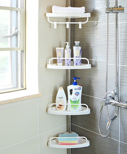 小卫生间的淋浴空间都在一个角落里,虽然局促,但也不是没有可以利用的空间,比如墙角,就可以利用收纳架放些洗发水浴液之类的瓶瓶罐罐。