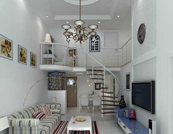 较高的空间,吊顶装修要讲究。吊灯的选择要注意美观,普通高度的空间,装一盏吊灯即可,复式装修宽敞的客厅可以做一些隔断。同时,在选择沙发时要注意颜色与空间的搭配、面料与季节的吻合。要营造素雅的空间,点睛的装饰少不了,在讲究绿色环保装修的今天,欧式复式楼装修也应该多多利用布艺、挂画、植载等软装元素,来体现主人的品位,营造温馨的家居氛围。