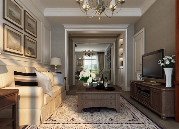 客厅背景墙建议采用一些艺术照片作装饰、水晶灯饰、以及采用绘画图案的电视背景墙,以白色为主色,在这些装饰布局的搭配下,让客厅装修显得十分简洁干练,非常适合年轻白领。