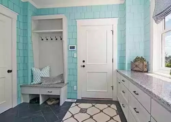 2、墙壁间隔之间应下实上虚,面对大门的玄关下半部应以良好的砖墙或木板来进行装修,作为模板,上半部装修可以明亮的装饰材料,如磨砂玻璃。