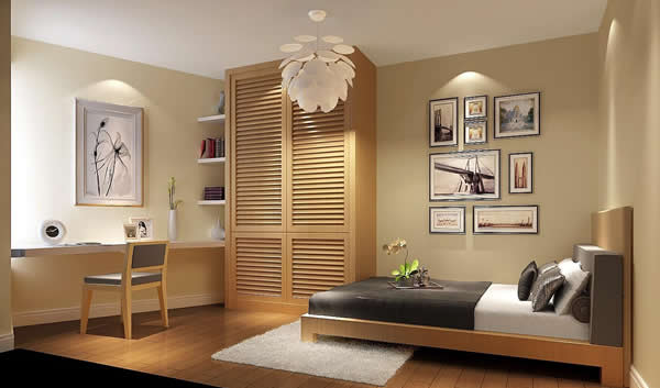卧室:一般照明气氛应该是宁静、温馨、怡人、柔和、舒适的。那些闪耀的、五彩缤纷的灯具一般不宜安装在卧室内。