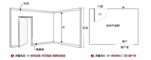 测量高度 H=房间层高-吊顶高度-踢脚线高度