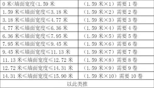 针对规格为0.53*10m的墙纸,2.3m≤常规户型墙高≤2.9m的房间我们提供了对应墙宽所需的墙纸卷数供您参考