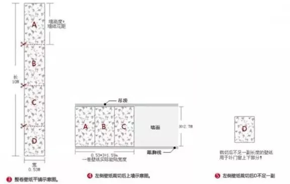 裁剪后不足一幅长度的墙纸D可以用于补门窗上下部分!
