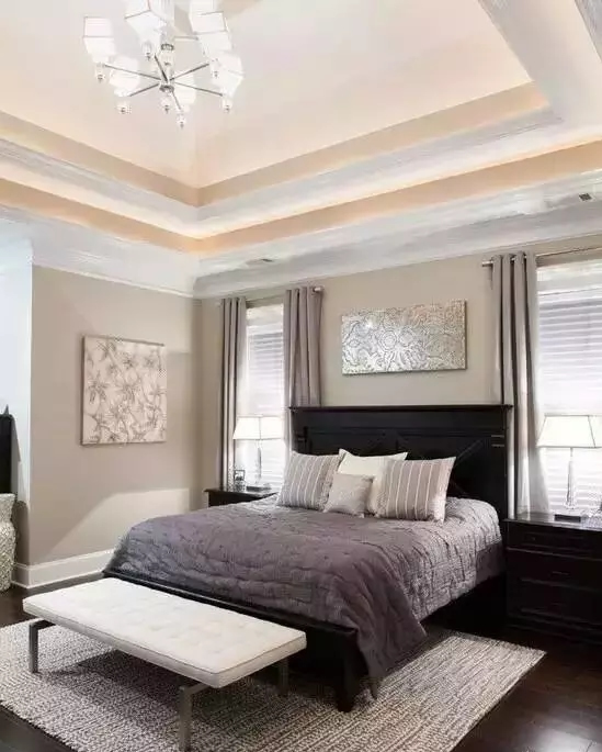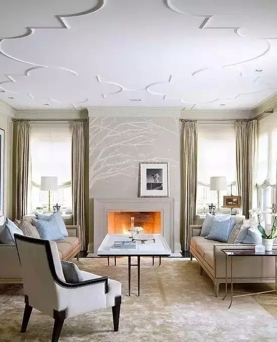 层次感非常强的吊顶,多用于有中央空调或新风的家,对房间的层高要求比较高,一般要在2.7米以上做才好看哦~