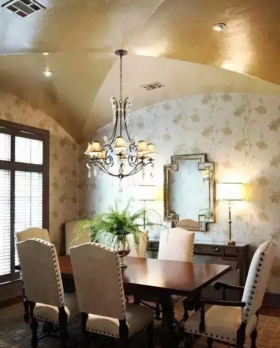 屋顶呈拱形,适合层高特别高或者顶面是尖屋顶的房间,要求房间最低点要大于2.6米,最高点没有要求,通常在4、5米左右。适合欧式和偏欧式风格。