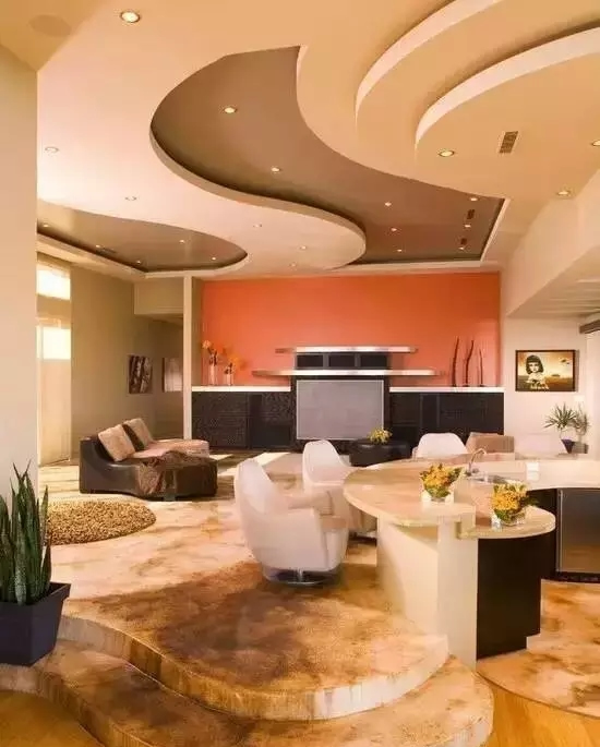 不规则图形的吊顶,通常吊顶的材质、造型都非常有特点,适合多种风格的装修设计。