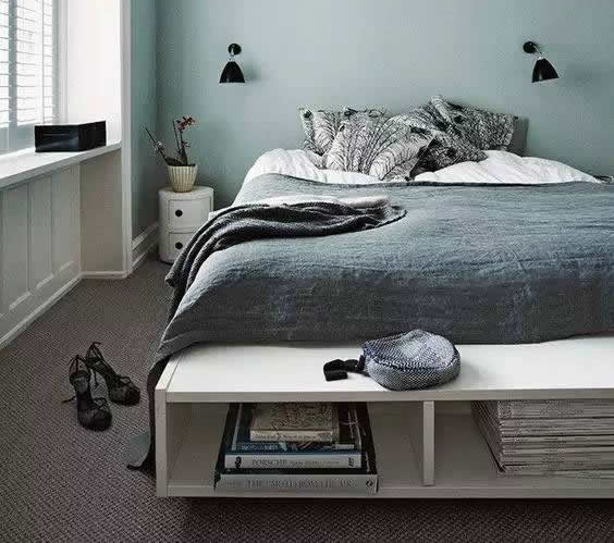卧室里一般要放置大量的衣物和被褥,因此装修时一定要考虑储物空间,不仅要大而且要使用方便。床头两侧最好有床头柜,用来放置台灯、闹钟等随手可以触到的东西。